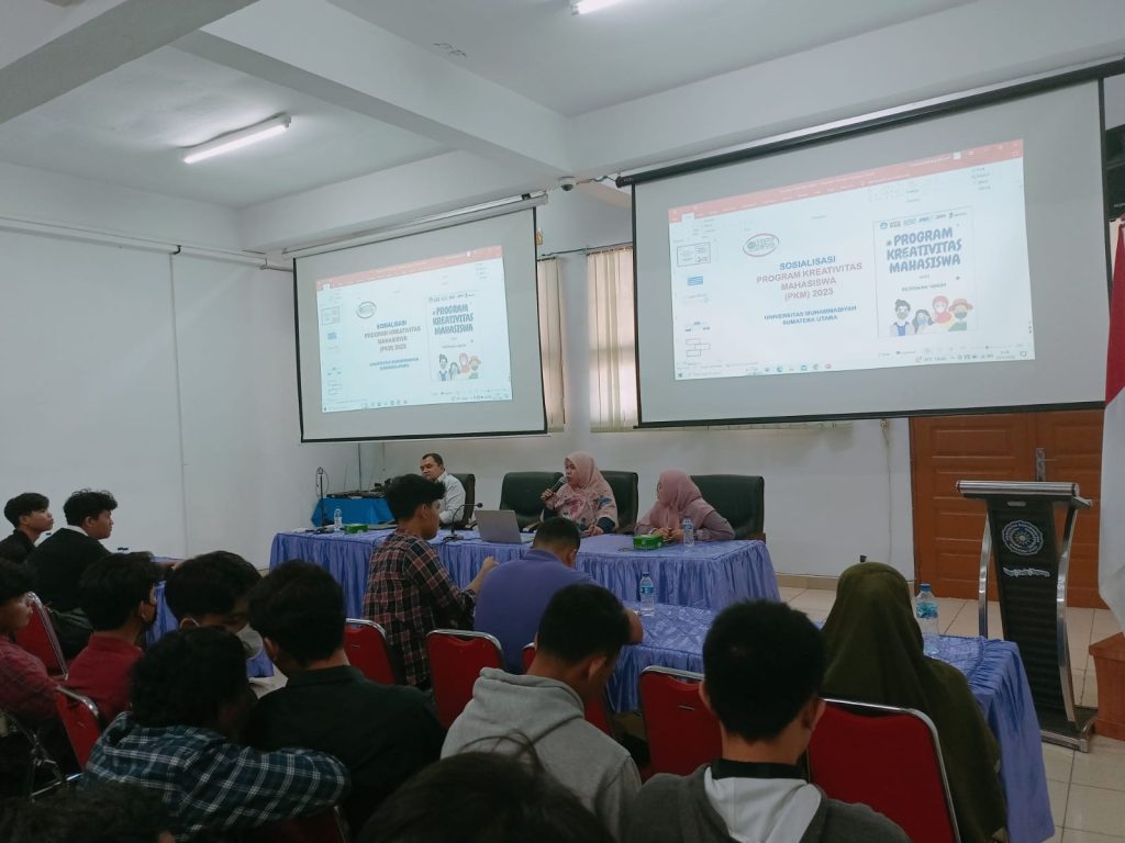 Dr.Lutfi Basit S.Sos M.I.Kom membuka kegiatan ini,beliau menyampaikan “PKM (Pekan Kreativitas Mahaiswa ) merupakan ajang yang diperuntunkan untuk mahasiswa secara nasional.kemudian di UMSU sendiri alhamdulilah sudah banyak yang lolos pendanaan proposal maupun sampai ke PIMNAS.Untuk FIKTI kita belum ada yang berhasil lolos proposalnya yg lolos pendanaan sampai ke PIMNAS,sehingga kami membuat kegiatan sosialisasi ini,agar mahasiswa FIKTI mengetahui bagaimana proses dan cara membuat proposal PKM itu sendiri secara baik dan benar.Semoga tahun 2023 mahasiswa FIKTI khususnya yang ikut PKM bisa lolos ketahap selanjutnya”tuturnya.